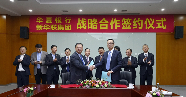 3月18日,華夏銀行與新華聯(lián)集團(tuán)在北京簽訂戰(zhàn)略合作協(xié)議,華夏銀行將為后者提供總額100億元人民幣的融資服務(wù)。華夏銀行北京分行行長李大營、新華聯(lián)集團(tuán)董事局主席兼總裁傅軍等參加簽約儀式。